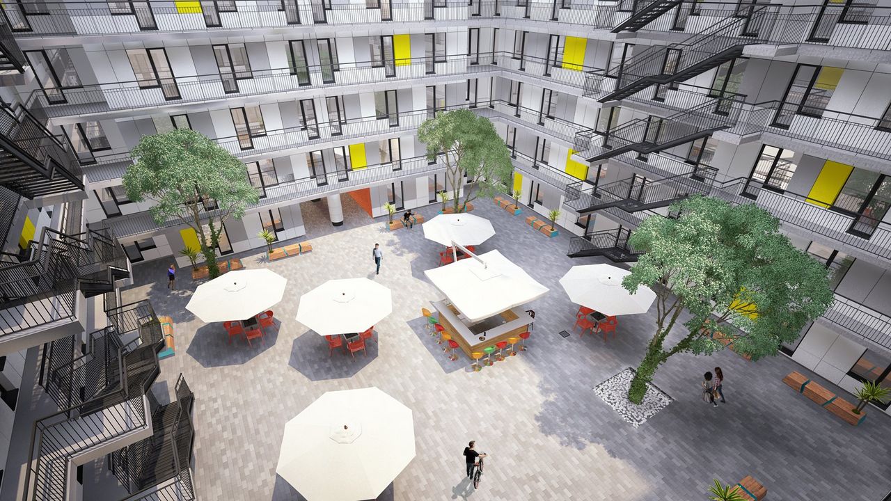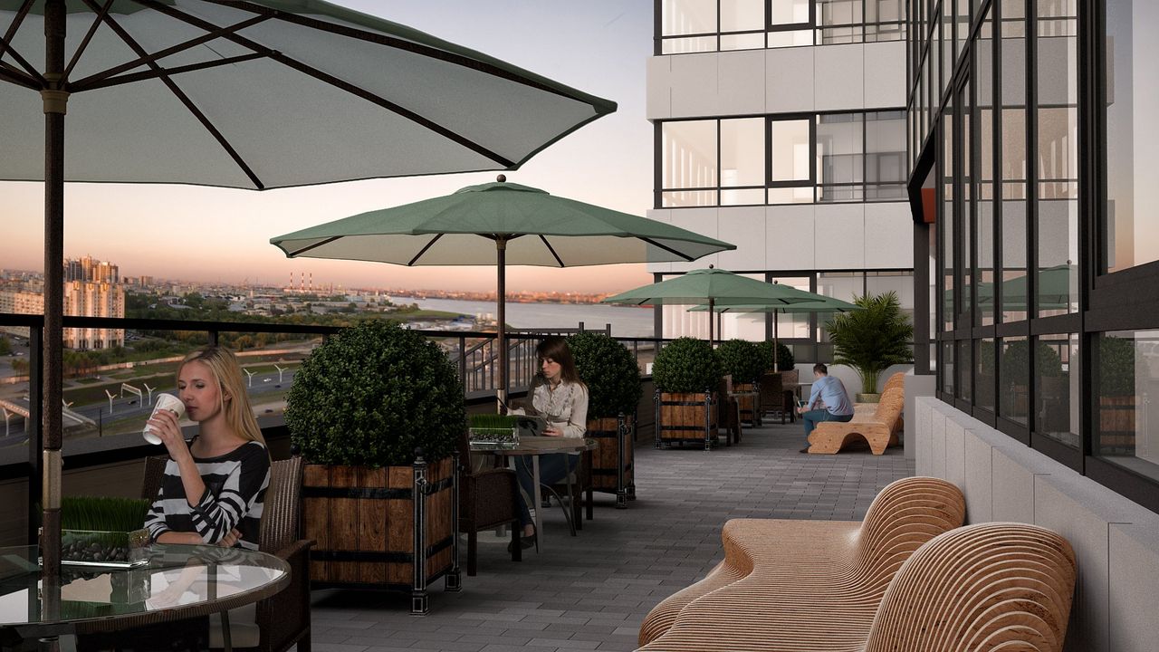 Внутреннюю инфраструктуру жилого комплекса застройщик планирует сделать максимально насыщенной. Вдоль жилого квартала будет обустроен пешеходный бульвар с мини-обсерваторией. На территории микрорайона планируется возведение апарт-отеля, а также многофункционального торгового центра площадью 15 тыс. кв. м.