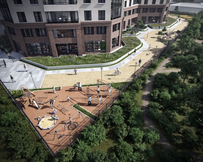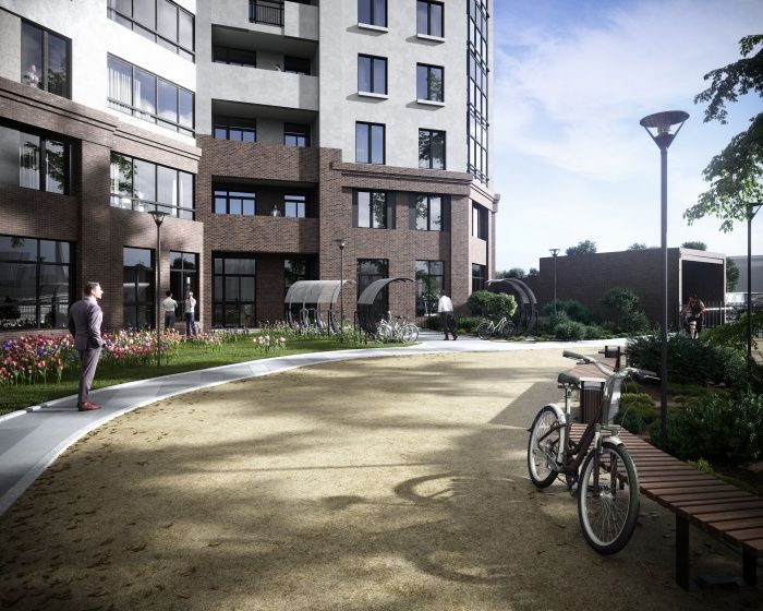 Это позволяет не устанавливать ступени и пандусы, что сделает комфортным доступ в жилой комплекс для любого человека. Проект включает квартиры от одной до трех комнат площадью от 34 до 74 кв. м.