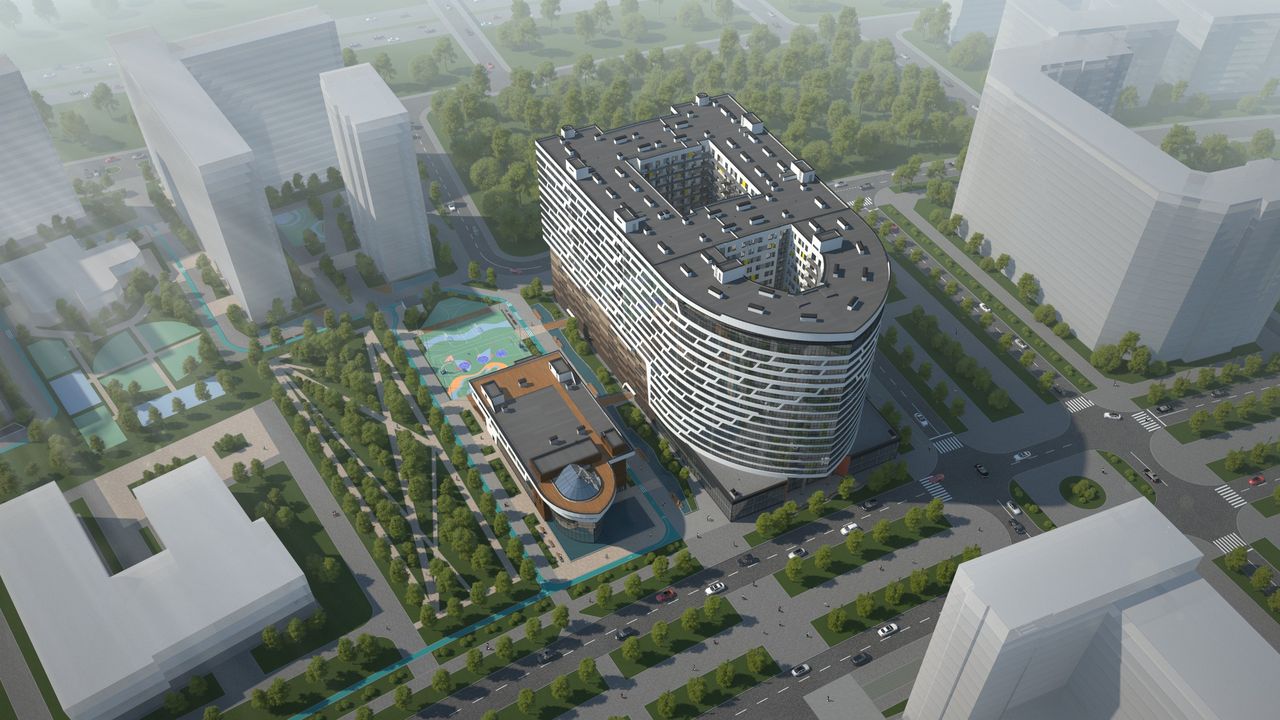 Внутреннюю инфраструктуру жилого комплекса застройщик планирует сделать максимально насыщенной. Вдоль жилого квартала будет обустроен пешеходный бульвар с мини-обсерваторией. На территории микрорайона планируется возведение апарт-отеля, а также многофункционального торгового центра площадью 15 тыс. кв. м.