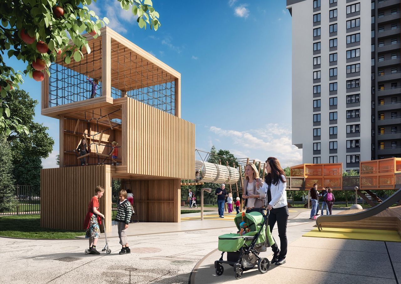 В первой очереди уже построен и работает детский сад, во второй строится еще один, а также общеобразовательная школа со стадионом. Двор в Ultra City — это многофункциональное пространство, огромная интерактивная развлекательно-познавательная площадка, где будет интересно проводить время и малышам, и подросткам, и молодым, и взрослым. Детские площадки от Richter Spielgerte, как в Новой ГолландииПлощадки workout с гимнастическими снарядами для людей с активной жизненной позициейМеста для занятия йогойСобственный фруктовый сад, крупномерные деревья, декоративные кустарники и цветущие многолетние растения.